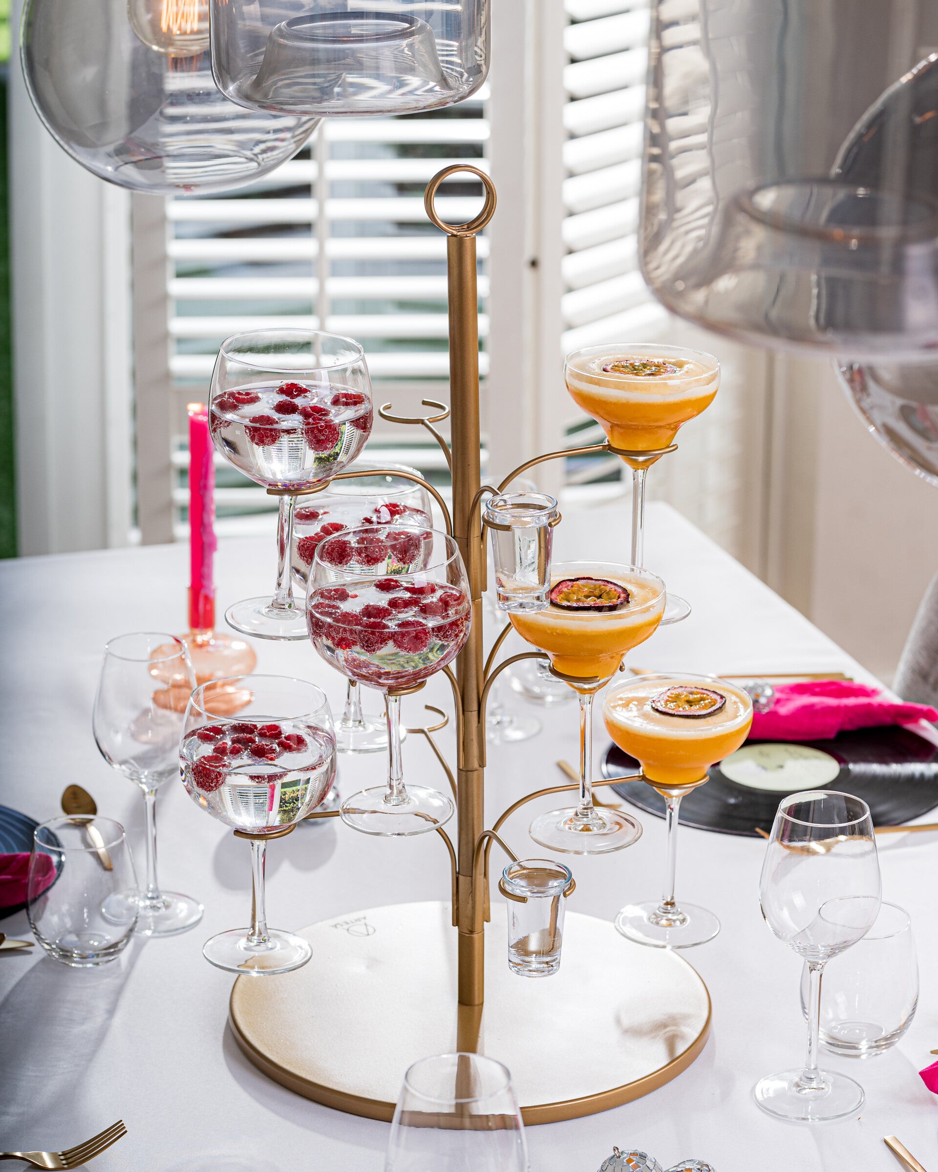 De elegante gouden cocktailtorens hebben ruimte voor 12 glazen, hierbij is keuze uit:
